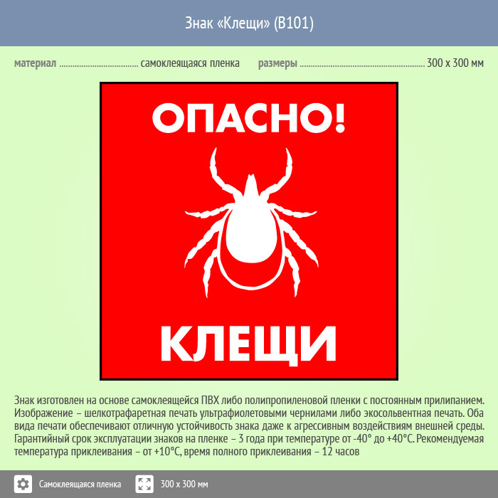 Знак «Опасно! Клещи», B101 (пленка, 300х300 мм) в Химках купить