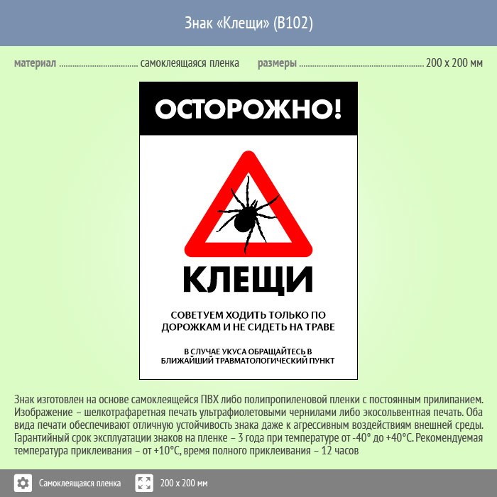 Знак «Осторожно! Клещи», B102 (пленка, 400х600 мм) в Химках купить