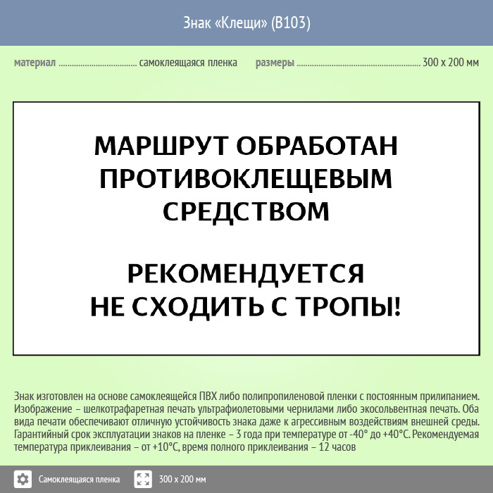 Знак «Клещи», B103 (пленка, 400х300 мм) в Химках купить