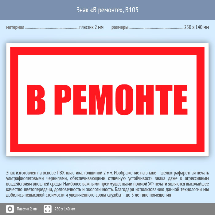 Знак «В ремонте», B105 (пластик, 250х140 мм) в Химках купить
