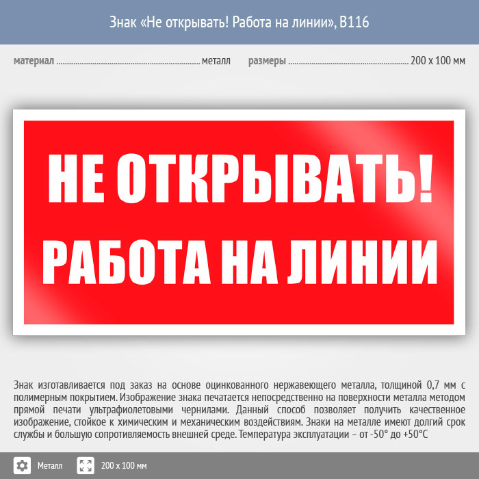 Знак «Не открывать! Работа на линии», B116 (металл, 200х100 мм) в Химках купить