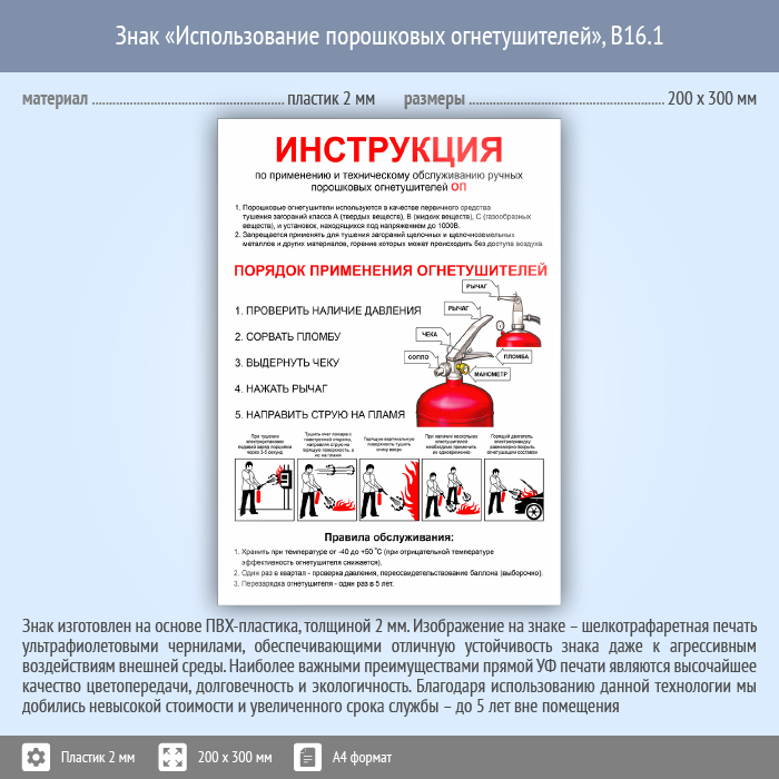 Знак «Использование порошковых огнетушителей», B16.1 (пластик, 200х300 мм) в Химках купить