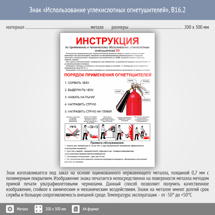 Знак «Использование углекислотных огнетушителей», B16.2 (металл, 200х300 мм) в Химках купить