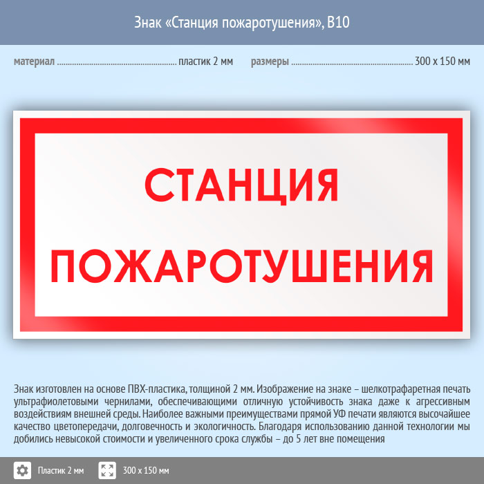 Знак «Станция пожаротушения», B10 (пластик, 300х150 мм) в Химках купить