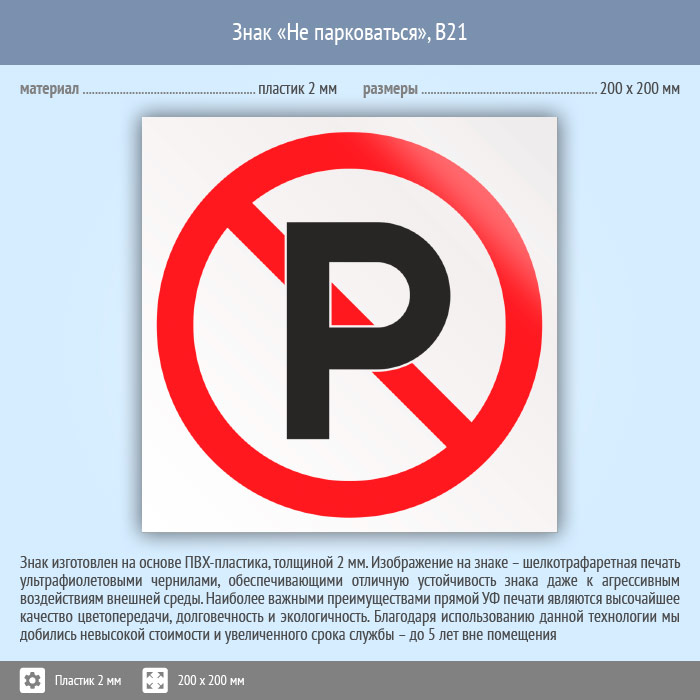 Знак «Не парковаться», B21 (пластик, 200х200 мм) в Химках купить