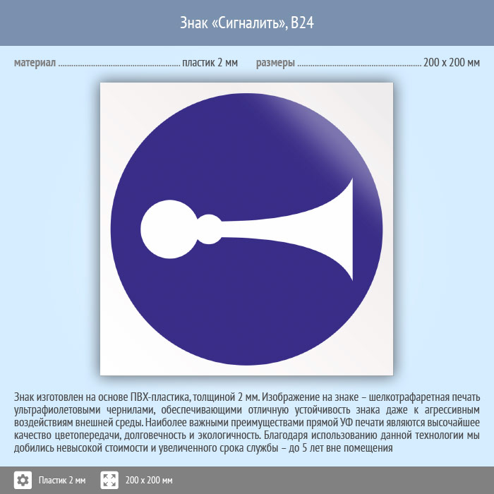 Знак «Сигналить», B24 (пластик, 200х200 мм) в Химках купить