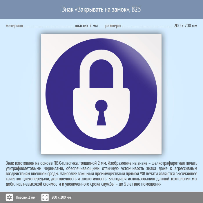 Знак «Закрывать на замок», B25 (пластик, 200х200 мм) в Химках купить