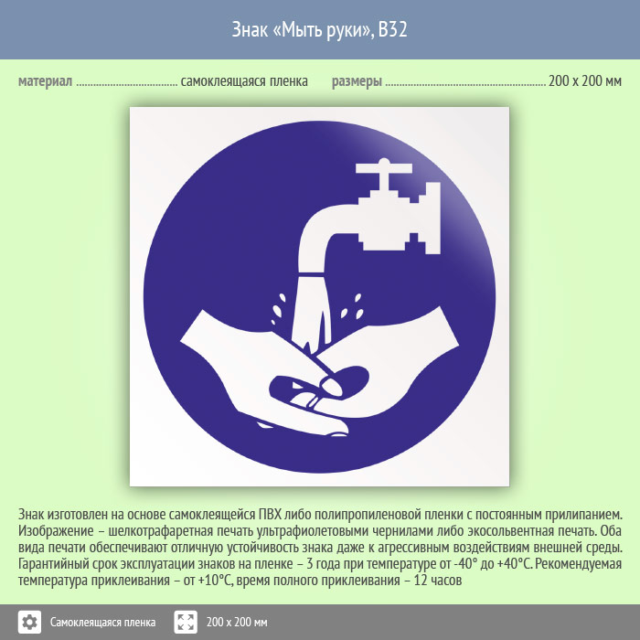 Знак «Мыть руки», B32 (пленка, 200х200 мм) в Химках купить
