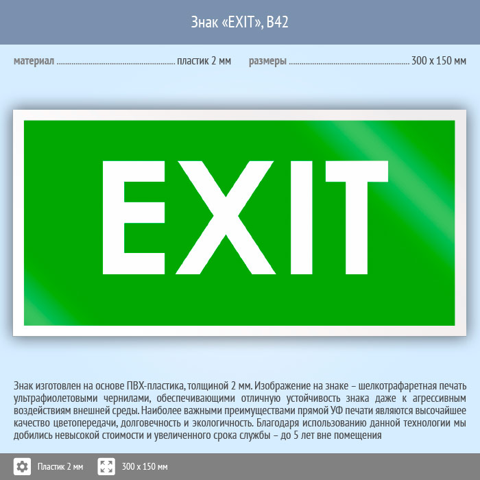 Знак «EXIT», B42 (пластик, 300х150 мм) в Химках купить