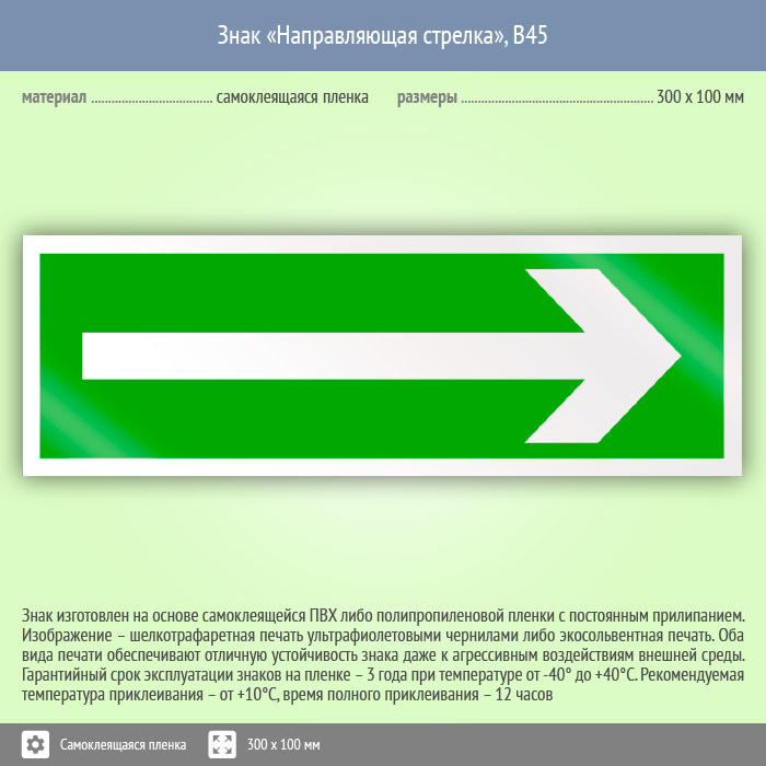 Знак «Направляющая стрелка», B45 (пленка, 300х100 мм) в Химках купить