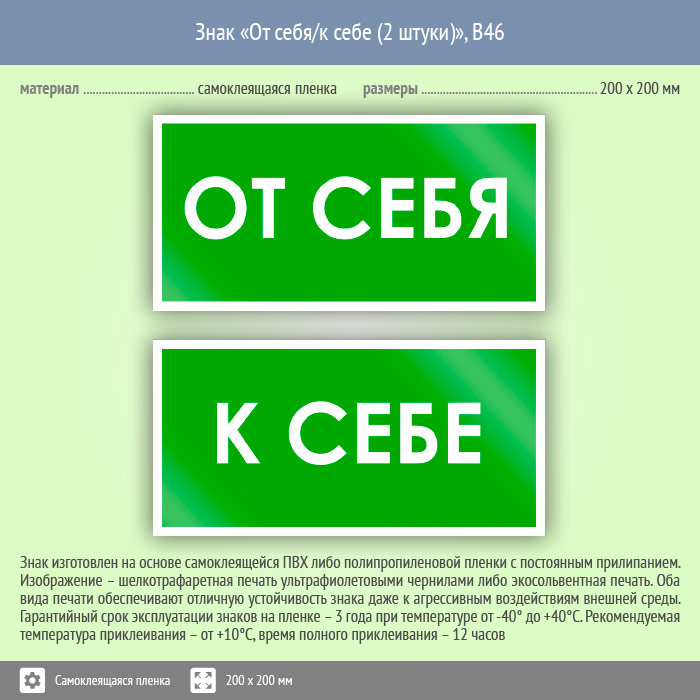 Знак «От себя/к себе», B46 (2 штуки, пленка, 200х100 мм) в Химках купить