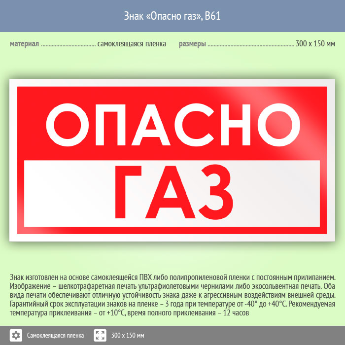 Знак «Опасно газ», B61 (пленка, 300х150 мм) в Химках купить
