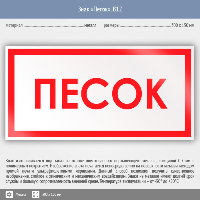 Знак «Песок», B12 (металл, 300х150 мм) в Химках купить