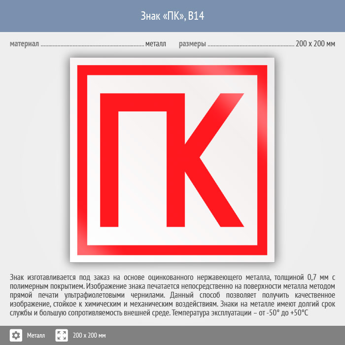 Знак «ПК», B14 (металл, 200х200 мм) в Химках купить
