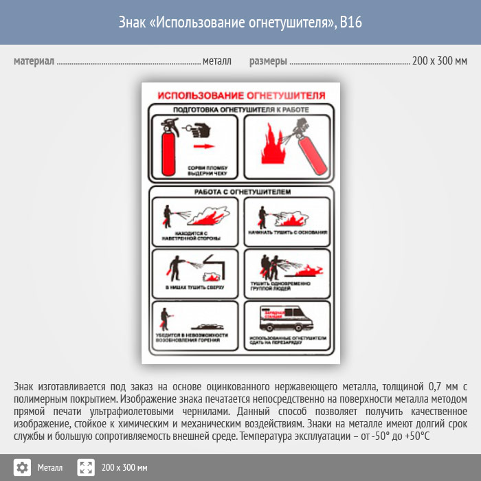Знак «Использование огнетушителя», B16 (металл, 200х300 мм) в Химках купить