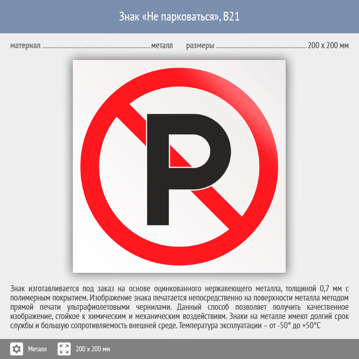 Знак «Не парковаться», B21 (металл, 200х200 мм) в Химках купить