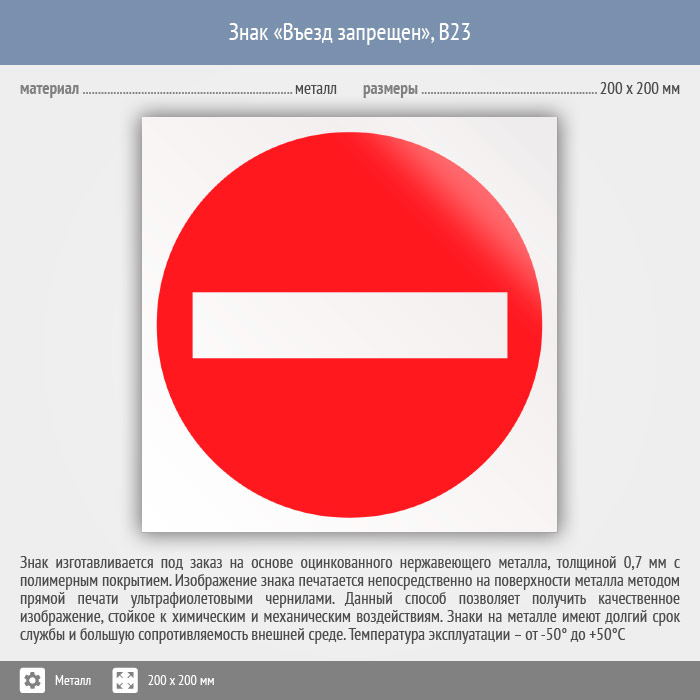 Знак «Въезд запрещен», B23 (металл, 200х200 мм) в Химках купить