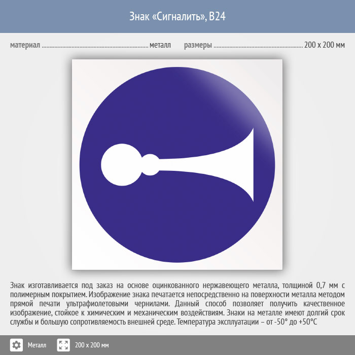 Знак «Сигналить», B24 (металл, 200х200 мм) в Химках купить