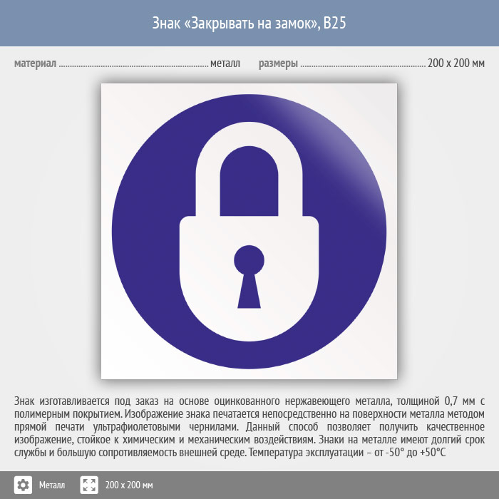 Знак «Закрывать на замок», B25 (металл, 200х200 мм) в Химках купить