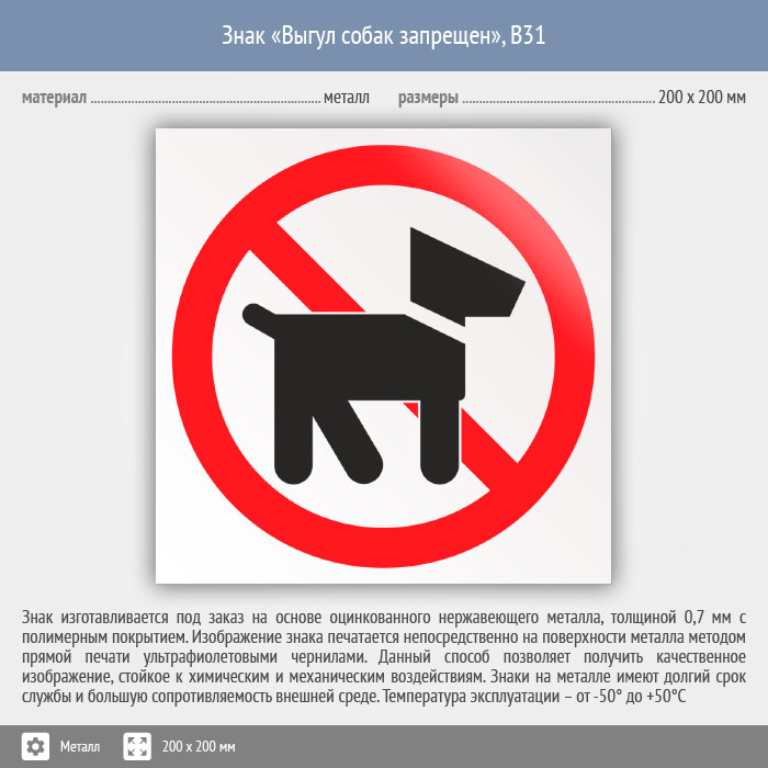 Знак «Выгул собак запрещен», B31 (металл, 200х200 мм) в Химках купить