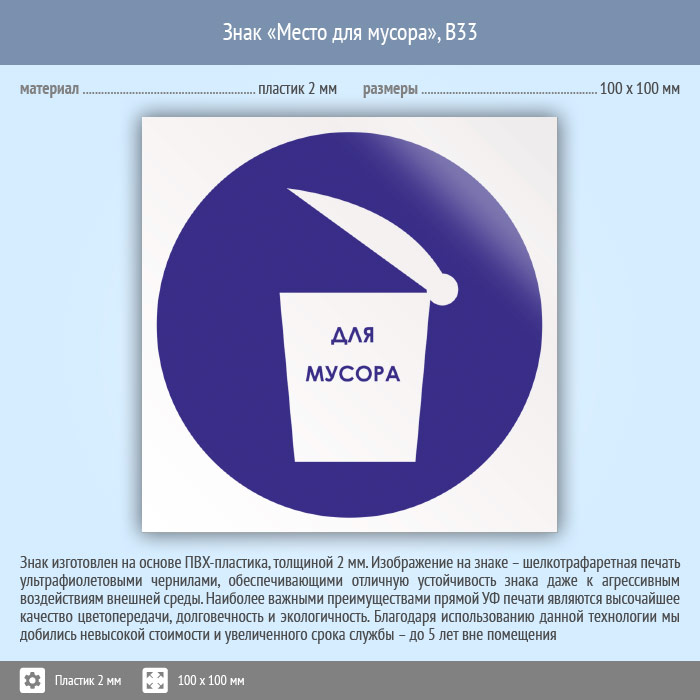 Знак «Место для мусора», B33 (пластик, 100х100 мм) в Химках купить