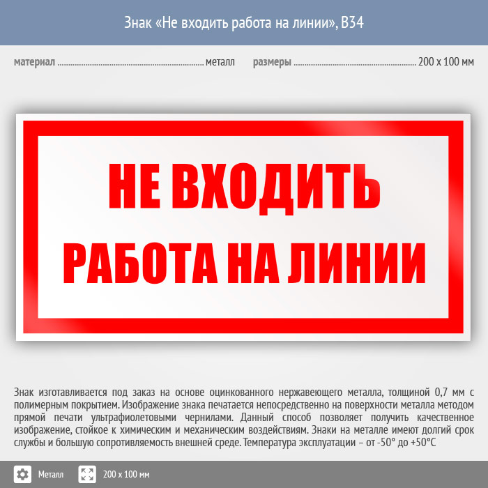 Знак «Не входить работа на линии», B34 (металл, 200х100 мм) в Химках купить