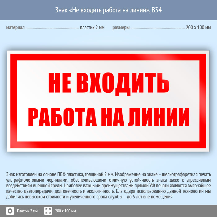 Знак «Не входить работа на линии», B34 (пластик, 200х100 мм) в Химках купить