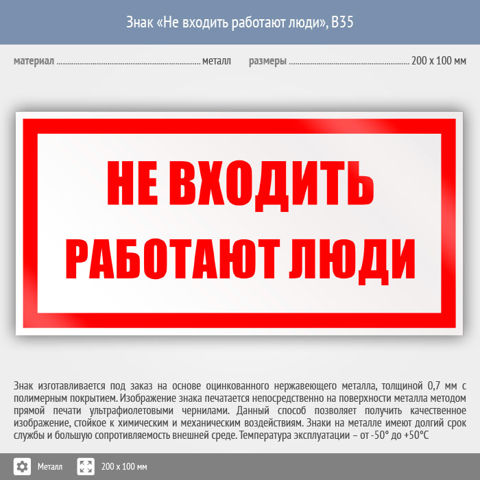 Знак «Не входить работают люди», B35 (металл, 200х100 мм) в Химках купить