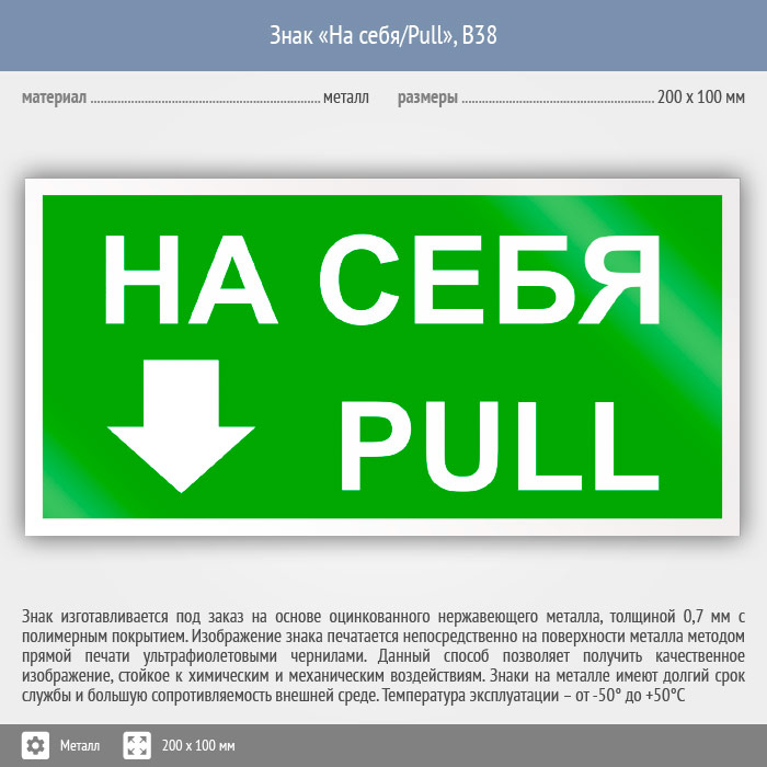 Знак «На себя/Pull», B38 (металл, 200х100 мм) в Химках купить