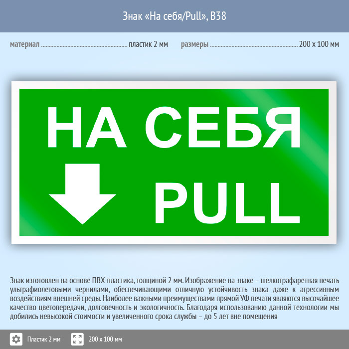 Знак «На себя/Pull», B38 (пластик, 200х100 мм) в Химках купить