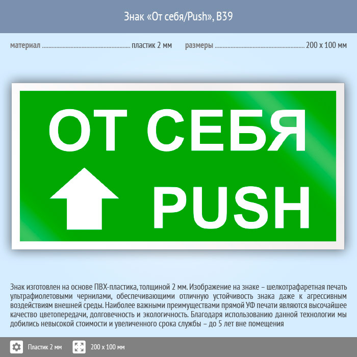 Знак «От себя/Push», B39 (пластик, 200х100 мм) в Химках купить