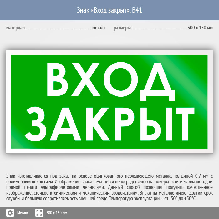Знак «Вход закрыт», B41 (металл, 300х150 мм) в Химках купить
