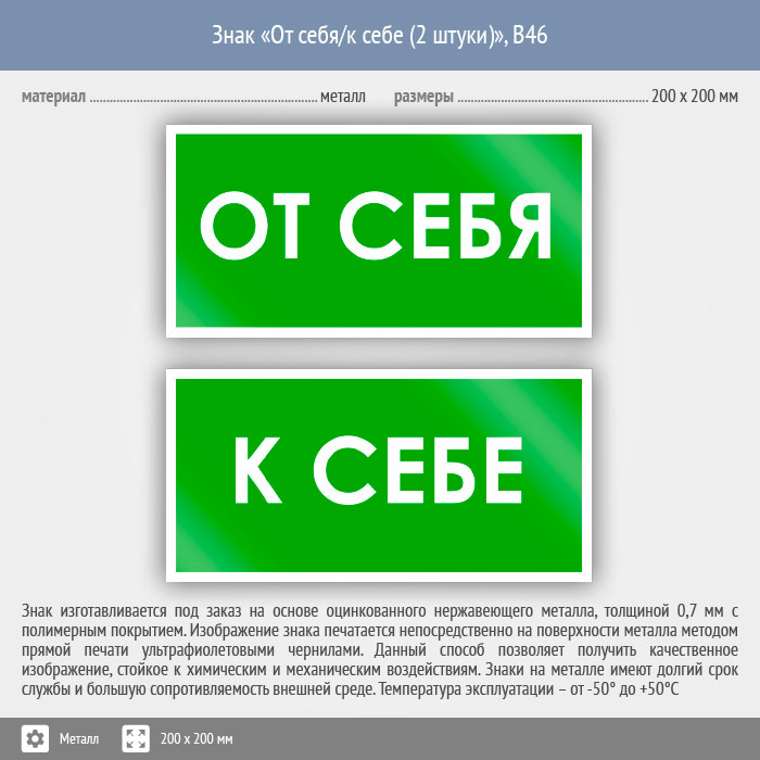 Знак «От себя/к себе», B46 (2 штуки, металл, 200х100 мм) в Химках купить