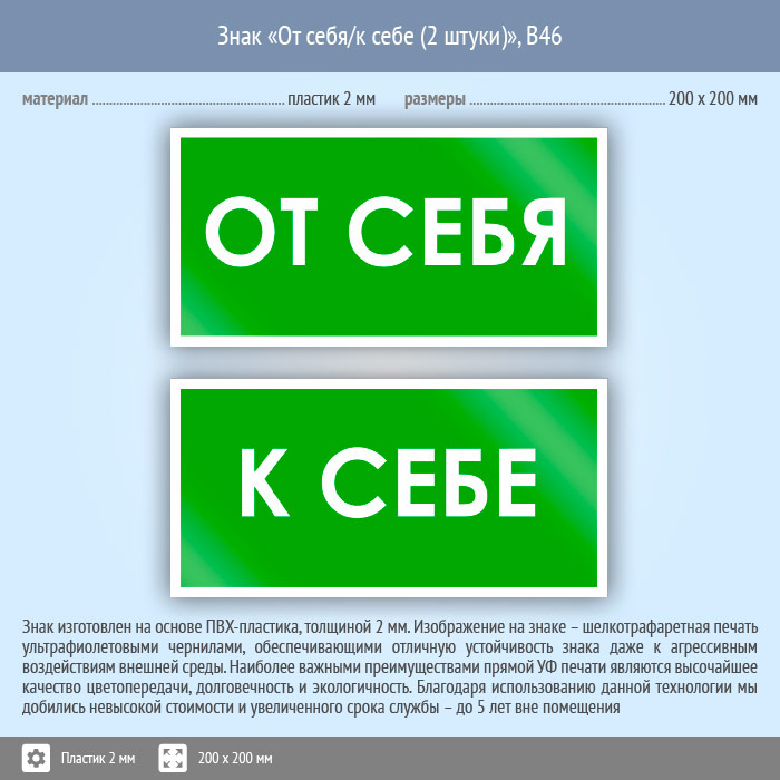 Знак «От себя/к себе», B46 (2 штуки, пластик, 200х100 мм) в Химках купить