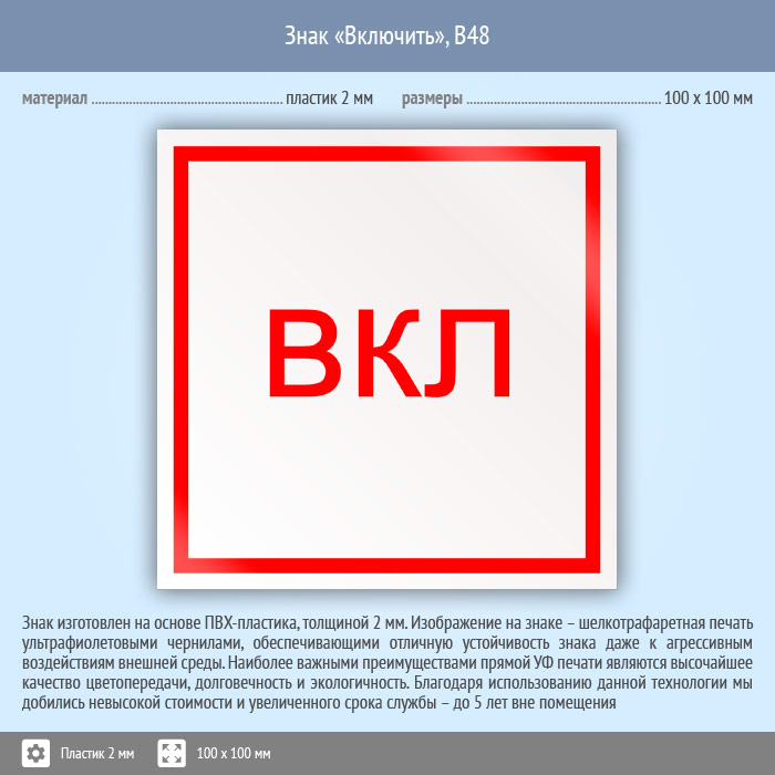 Знак «Включить», B48 (пластик, 100х100 мм) в Химках купить