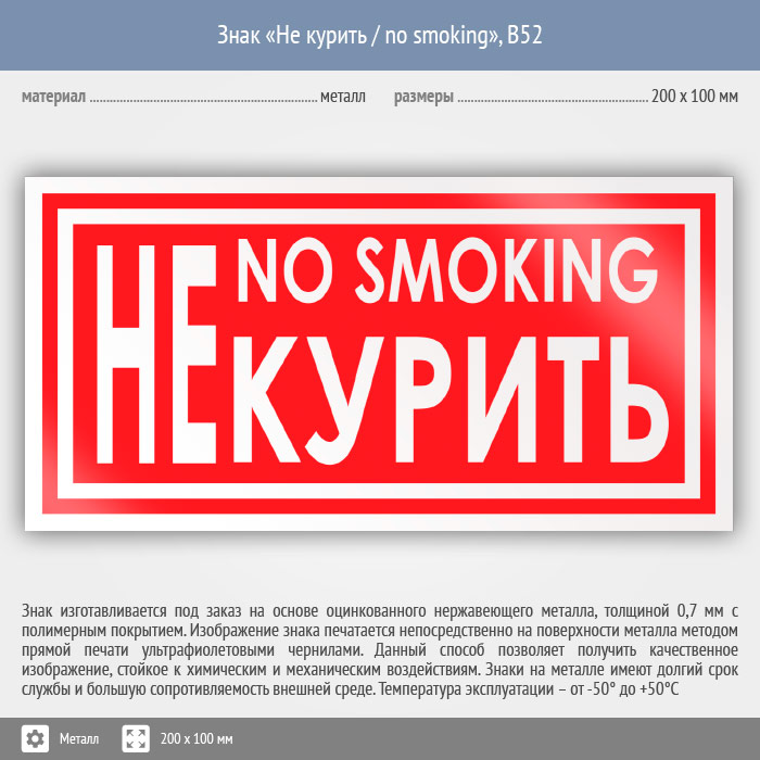 Знак «Не курить / no smoking», B52 (металл, 200х100 мм) в Химках купить