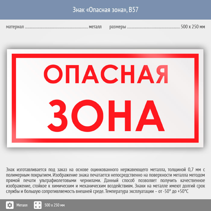 Знак «Опасная зона», B57 (металл, 500х250 мм) в Химках купить