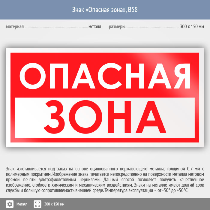 Знак «Опасная зона», B58 (металл, 300х150 мм) в Химках купить