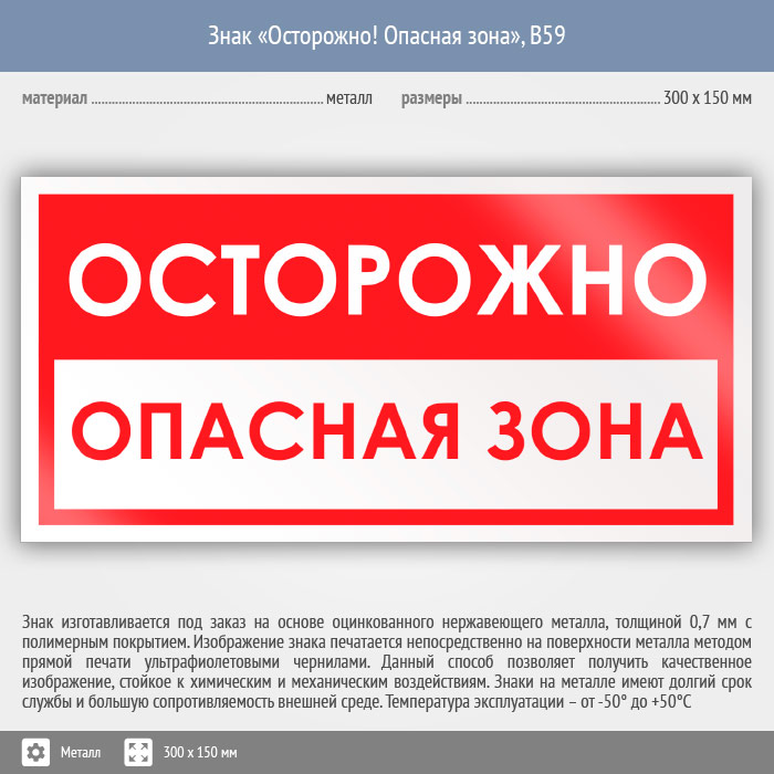 Знак «Осторожно! Опасная зона», B59 (металл, 300х150 мм) в Химках купить