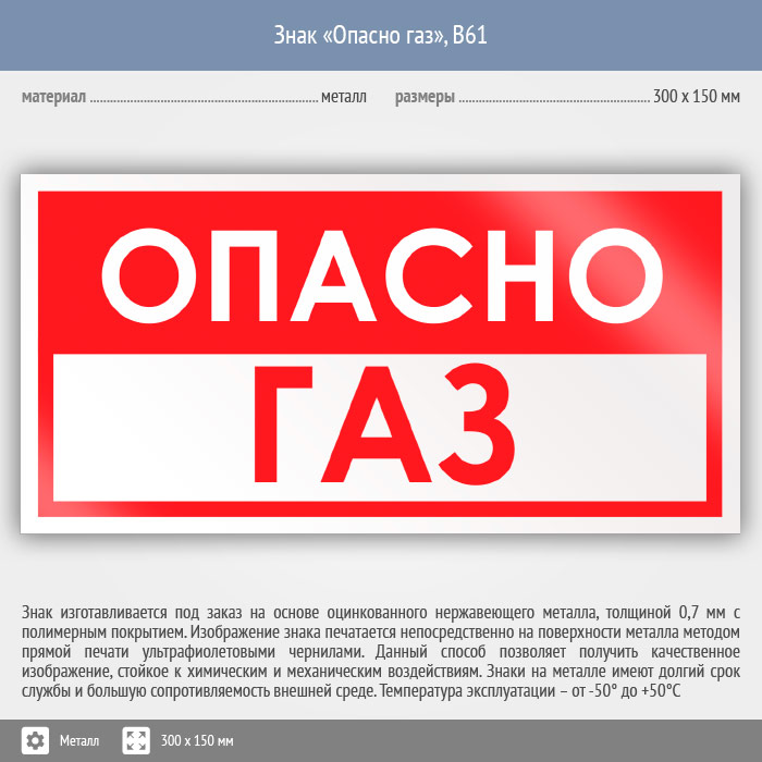 Знак «Опасно газ», B61 (металл, 300х150 мм) в Химках купить