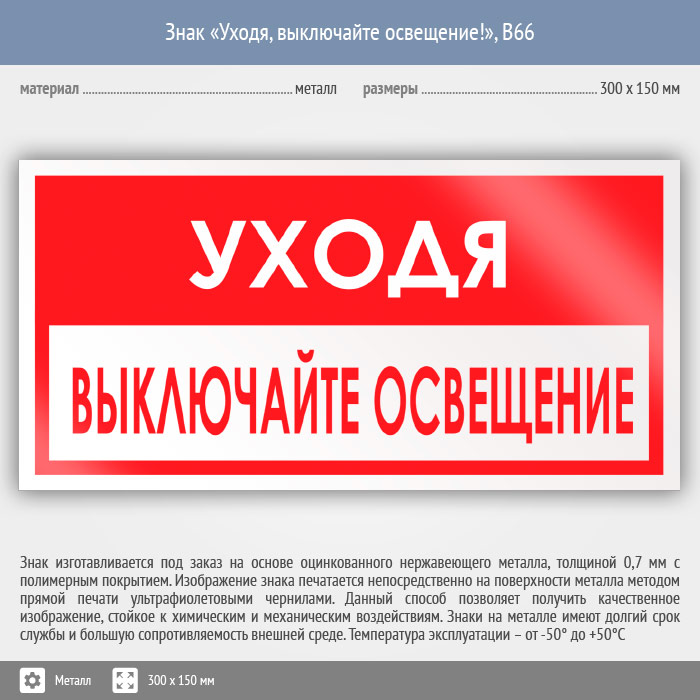 Знак «Уходя, выключайте освещение!», B66 (металл, 300х150 мм) в Химках купить