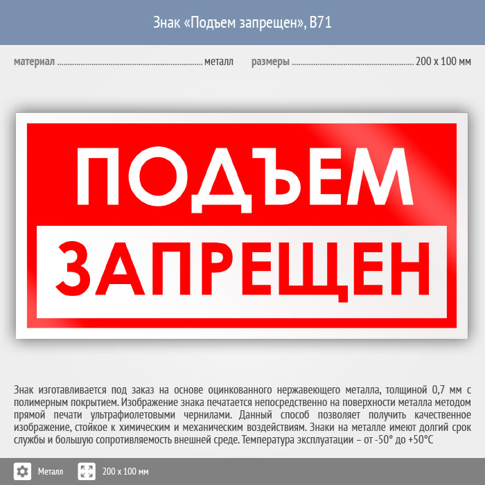 Знак «Подъем запрещен», B71 (металл, 200х100 мм) в Химках купить
