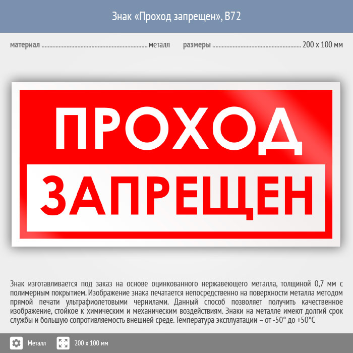 Знак «Проход запрещен», B72 (металл, 200х100 мм) в Химках купить