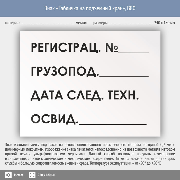 Знак «Табличка на подъемный кран», B80 (металл, 240х180 мм) в Химках купить