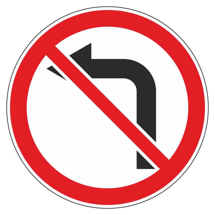 Дорожный знак 3.18.2 «Поворот налево запрещен» (металл 0,8 мм, III типоразмер: диаметр 900 мм, С/О пленка: тип В алмазная) в Химках купить