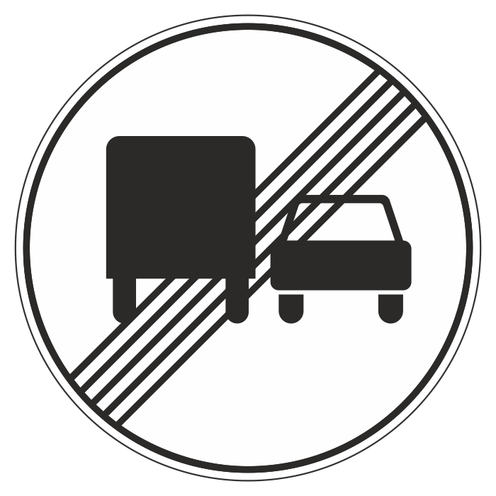 Дорожный знак 3.23 «Конец зоны запрещения обгона грузовым автомобилям» (металл 0,8 мм, II типоразмер: диаметр 700 мм, С/О пленка: тип Б высокоинтенсивная) в Химках купить