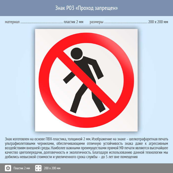 Знак P03 «Проход запрещен» (пластик, 200х200 мм) в Химках купить