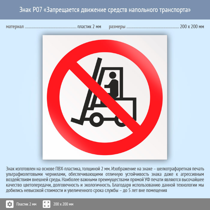 Знак P07 «Запрещается движение средств напольного транспорта» (пластик, 200х200 мм) в Химках купить