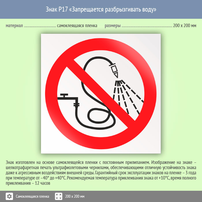 Знак P17 «Запрещается разбрызгивать воду» (пленка, 200х200 мм) в Химках купить