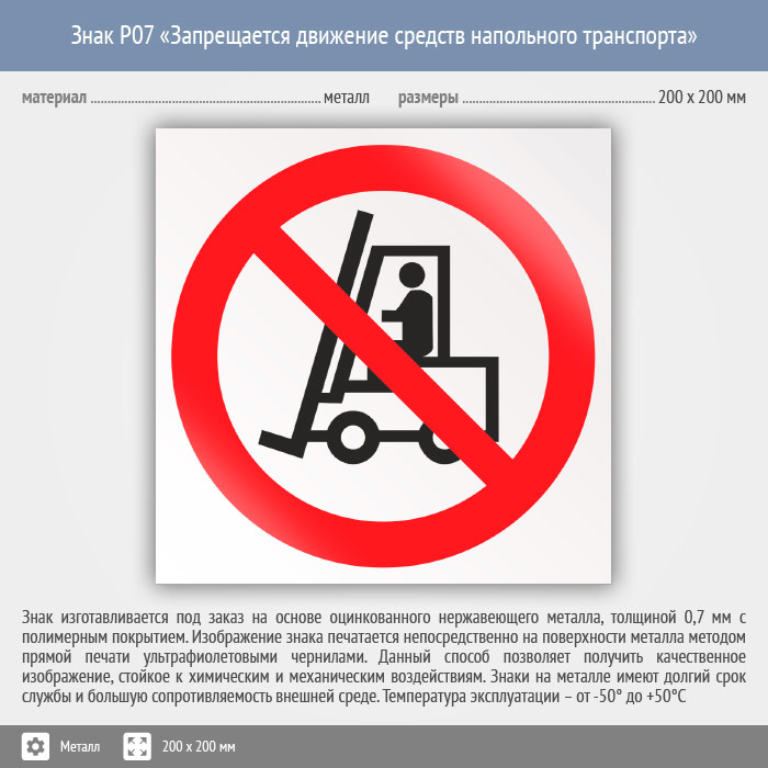 Знак P07 «Запрещается движение средств напольного транспорта» (металл, 200х200 мм) в Химках купить